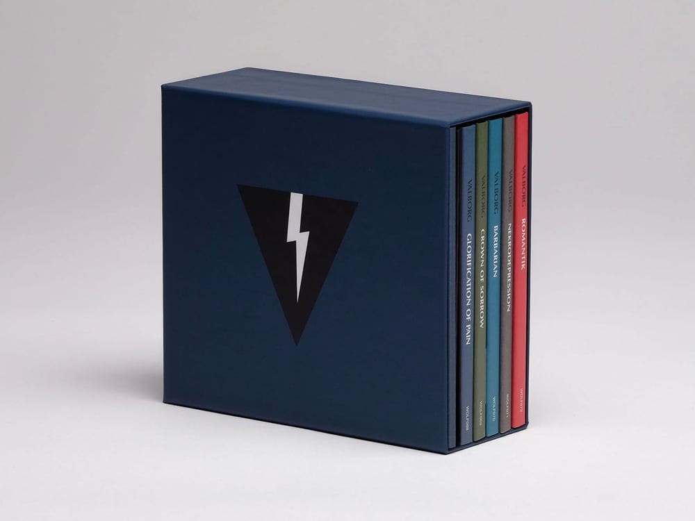 7 CD box set with all studio recordings of Valborg until 2015. Contains the band's first five albums "Glorification Of Pain", "Crown Of Sorrow", "Barbarian", "Nekrodepression" and "Romantik" as Digipak CDs with entirely new artworks as well as the early demos "Songs For A Year" and "Radio Valborg" as cardsleeve CDs. Also, the robust slipcase box offers an exclusive, 64-page booklet. Limited to 500 numbered copies.